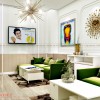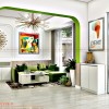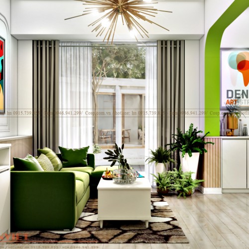 Bố trí nội thất phòng chờ tư vấn với 2 bộ sofa gỗ bọc nỉ mềm mại, kệ trang trí gỗ MDF phủ melamin, kệ gắn tường . Và nhiều chi tiết décor trang trí như: tranh treo tường in PP, đèn treo trường thiết kế độc đáo.