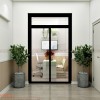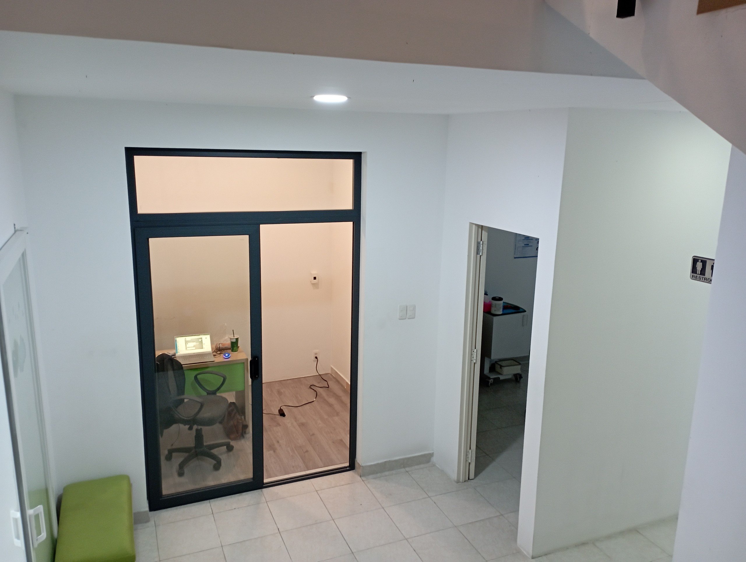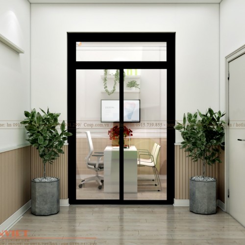 Ngăn cách phòng tư vấn với các phòng chức năng khách chúng tôi đã sử dụng lớp cửa kính cường lực viền đen. Phương án này không chỉ đảm bảo sự riêng tư và yên tĩnh khi làm việc mà còn giải quyết vấn đề hạn chế diện tích và bí bách do không có cửa sổ để lấy ánh sáng tự nhiên.