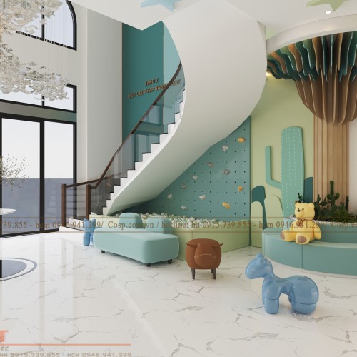 Đối tượng khách hàng của trung tâm chăm sóc là các bé mọi lứa tuổi. Do đó, việc thiết kế trung tâm cần chú trọng đến các nhiều yếu tố màu sắc, ánh sáng. Bởi vì các bé thường yêu thích những không gian có màu sắc sinh động, những không gian lung linh, huyền ảo. Theo nghiên cứu của các nhà khoa học, ánh sáng là yếu tố tạo nên sự thích thú, vui vẻ cũng như tăng cường khả năng phát triển tư duy của các bé.