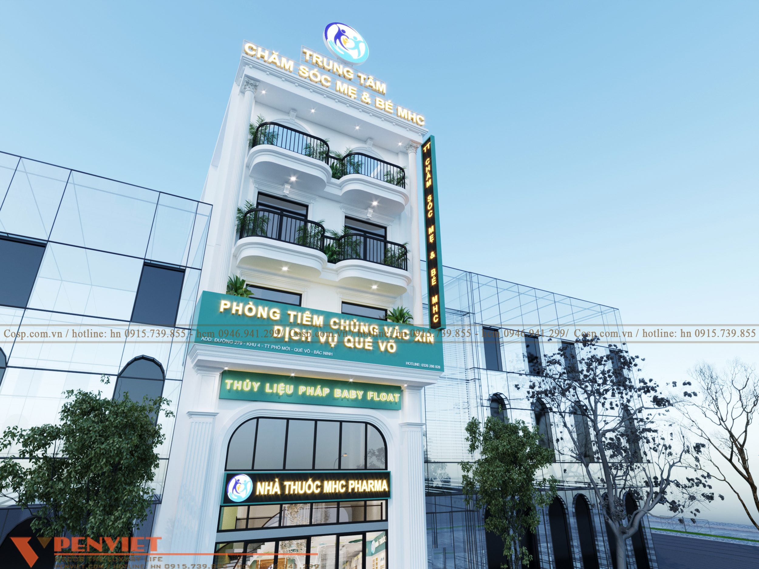 Thiết kế mặt tiền trung tâm chăm sóc mẹ và bé MHC