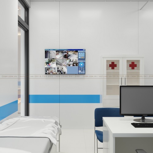Chủ đầu tư tán thành phương án sử dụng màu trắng làm gam màu chủ đạo nhằm mang tới hình ảnh thân thuộc của các cơ sở y tế. Bên cạnh đó, chúng tôi cũng khéo léo lựa chọn màu xanh dương để làm điểm nhấn cũng như tạo cảm giác thoải mái, dễ chịu cho bệnh nhân khi tới đây thăm khám.