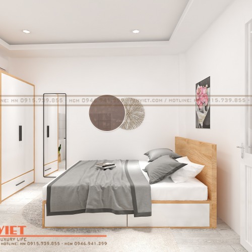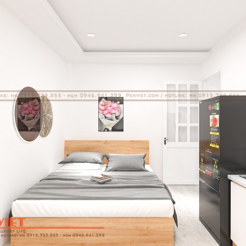 Bên cạnh đó, PenViet cũng setup thêm kệ giày dép bằng gỗ MDF phủ melamine giúp không gian căn phòng trở nên gọn gàng, ngăn nắp hơn.