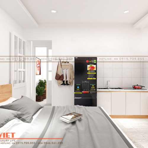 Phòng ngủ được setup bởi đầy đủ nội thất, nhằm đáp ứng nhu cầu sử dụng của chủ đầu tư từ giường, bếp.