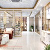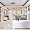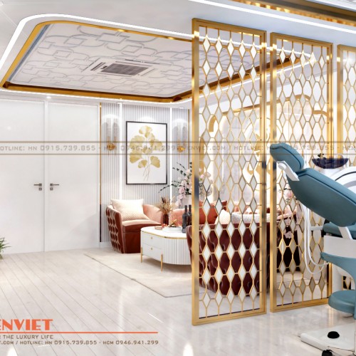 Lựa chọn lối thiết kế mở, chúng tôi đã thực hiện setup hệ vách gương Bỉ nhập khẩu mài vát cạnh, nẹp gỗ sơn nhũ vàng cao cấp, vừa giúp không gian phòng khám thêm thoáng đãng, rộng rãi, vừa toát lên sự sang trọng, tinh tế.
