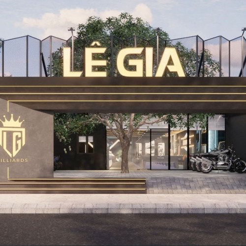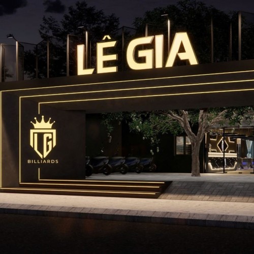 Biển bảng quảng cáo của thiết kế quán bida Lê Gia gây ấn tượng mạnh bởi sự khỏe khoắn và hiện đại. Tone màu chủ đạo là đen nhám kết hợp cùng các đường viền vàng ánh kim nổi bật. Phía trên cùng là dòng chữ mica “LÊ GIA” in hoa lớn, sử dụng đèn LED âm sáng vàng nổi bật, giúp nhận diện thương hiệu rõ ràng. Kiểu chữ vuông vức, mạnh mẽ thể hiện sự đẳng cấp và chuyên nghiệp của quán.