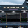 Ngay từ cái nhìn đầu tiên, mặt tiền của 2T Billiards Club đã tạo ấn tượng mạnh mẽ với thiết kế tối giản nhưng không kém phần bắt mắt. Bảng hiệu lớn chiếm trọn phần trên của mặt tiền, với dòng chữ “2T BILLIARDS CLUB” kết hợp đèn LED nổi màu vàng ánh kim, dễ dàng thu hút ánh nhìn. Xung quanh bảng hiệu là những đường viền ánh sáng LED xanh dương và hồng tạo sành điệu.