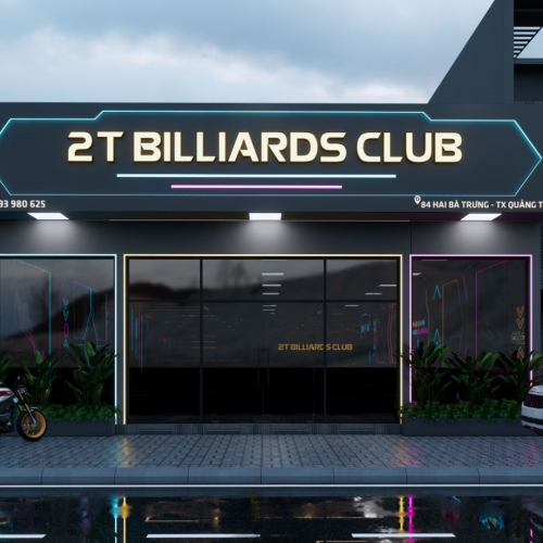 Chủ đầu tư mong muốn sở hữu không gian nội thất ấn tượng, hiện đại cho quán bida và nhằm định hình trải nghiệm khách hàng. Không làm chủ đầu tư thất vọng, thiết kế quán bida 2T Billiards Club tại số 84 Hai Bà Trưng, TX Quảng Trị được đánh giá cao về tính thẩm mỹ hiện đại, không gian chuyên nghiệp. Với sự đầu tư bài bản từ mặt tiền cho đến trang trí nội thất, 2T Club đang nhanh chóng trở thành điểm đến yêu thích của giới trẻ yêu thích bida.