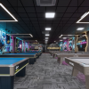 Hai bức tranh lớn chính giữa là tác phẩm nghệ thuật ánh sáng là hình ảnh siêu xe lao vào vũ trụ và chiếc xe thể thao phóng qua rừng ma quái. Cả hai đều sử dụng đèn viền LED ánh tím, xanh và hồng tạo thế giới ảo đậm chất điện ảnh. Nơi đây còn tạo ra vô số góc “check-in” lý tưởng phù hợp với giới trẻ yêu thích mạng xã hội và trải nghiệm thị giác mới lạ.