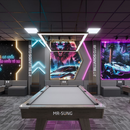 Phương án thiết kế quán bida 2T Billiards Club tại Quảng Trị là một bước đột phá trong tư duy tạo dựng không gian giải trí hiện đại. Sự kết hợp giữa thẩm mỹ ánh sáng neon, bố cục khoa học và tranh trang trí tăng chiều sâu cảm xúc. 2T Club là điểm đến phong cách để bạn có thể thoải mái chơi bida yêu thích. Nếu bạn quan tâm mẫu thiết kế ưng ý, hãy liên hệ PenViet ngay hôm nay.