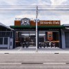 Lối vào quán được thiết kế mở với cửa kính cường lực lớn, tạo không gian thông thoáng và dễ dàng quan sát bên trong. Điểm nhấn nổi bật khác là phần mái che màu xanh lá cây độc đáo, tạo điểm nhận diện riêng biệt cho MGB 93 giữa khu phố đông đúc.