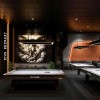 Trần nhà được sơn đen hoàn toàn, giúp tập trung ánh sáng vào bàn chơi và tạo chiều sâu cho không gian. Đây là một kỹ thuật thiết kế thông minh giúp làm nổi bật khu vực chính và tăng thêm phần sang trọng cho tổng thể.