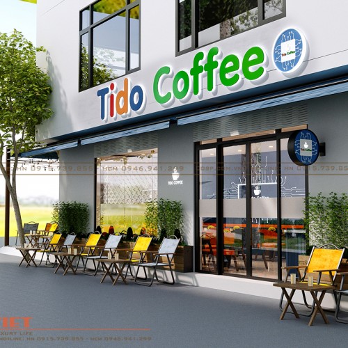 Mặt tiền của quán cafe TIDO tươi mới, hiện đại