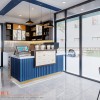 Quầy thu ngân làm từ gỗ MDF cốt xanh Thái Lan chống ẩm phủ melamine xẻ rãnh sơn màu xanh dương độc đáo. Đây cũng chính là gam màu chủ đạo của không gian quán cafe TIDO này.