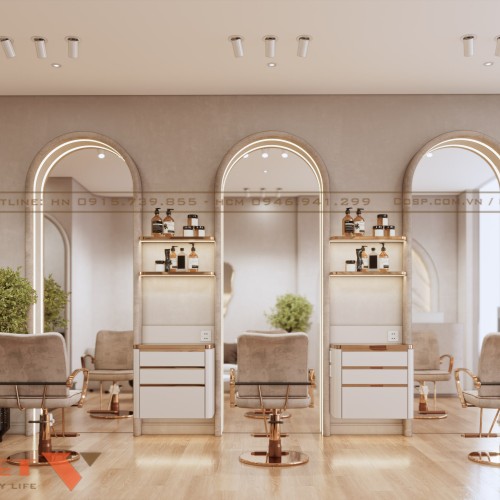 Nếu bạn đang ấp ủ kế hoạch mở salon tóc hoặc muốn cải tạo lại cơ sở hiện tại, mẫu thiết kế này chắc chắn là nguồn cảm hứng lý tưởng để định hình phong cách riêng và nâng cao giá trị thương hiệu.
