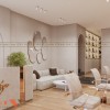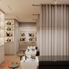 Một trong những điểm nổi bật của thiết kế salon này là sự phối hợp màu sắc vô cùng tinh tế. Giữa tông màu chủ đạo là trắng ngà, xám tro, ánh đồng, kết hợp cùng sàn gỗ màu sáng tự nhiên tạo nên một không gian ấm áp, nhẹ nhàng nhưng vẫn giữ được nét sang trọng.