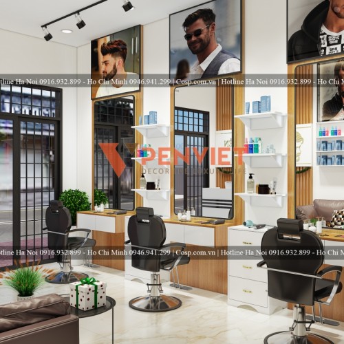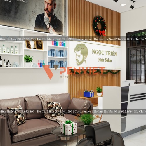 Hôm nay Nội thất Cosp xin giới thiệu đến bạn đọc mẫu thiết kế salon tóc Ngọc Triển mà chúng tôi đã hợp tác thiết kế với anh Triển. Cùng chúng tôi tham quan một vòng quanh tiệm cắt tóc nam này nhé.
