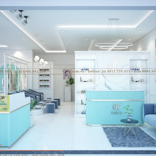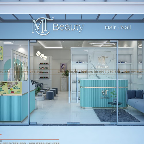 Ý tưởng: Thiết kế tiệm tóc và nail MT Beauty với mục tiêu ận dụng tối đa không gian diện tích mà salon có, tạo nên tổng thể không gian phù hợp với ý định và hạn mức chi tiêu của chủ đầu tư. Bố cục nội thất và tông màu chủ đạo kết hợp với anh sáng tạo nên salon sang chảnh thu hút khách hàng.