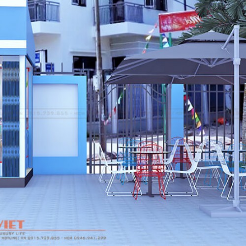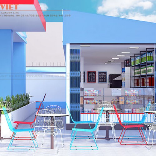 Do hạn chế về mặt bằng nhỏ hẹp. chúng tôi tư vấn cho khách hàng tận dụng khoảng trống phía ngoài để bố trí những bàn đón khách. Điều này vừa giúp gia tăng được diện tích cửa tiệm, vừa mang đến sự thoải mái cho khách hàng.