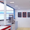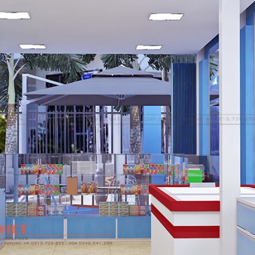 Sử dụng màu xanh dương đồng điệu với màu sắc của ngôi trường cùng với những chi tiết trang trí thể hiện được nét đặc trưng của những chiếc container, Penviet đã thành công trong việc tạo nên sự ấn tượng, lôi cuốn cho cửa tiệm. Bên cạnh đó, chúng tôi dùng màu trắng như một giải pháp thiết kế mang đến hiệu ứng thị giác giúp cho không gian bên trong canteen trở nên rộng rãi, thoáng đãng. Sự kết hợp màu sắc tinh tế trong những đường nét, họa tiết mang đến vẻ đẹp trẻ trung, năng động cho cửa hàng.