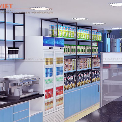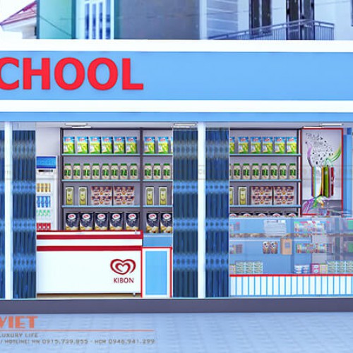 Canteen trường học giống như một cửa hàng tạp hóa tích hợp nhiều dịch vụ tiện ích. Để giúp chủ cửa hàng có thêm không gian trưng bày sản phẩm, Penviet thiết kế những kệ tủ sắt sơn tĩnh điện cao, bố trí sát tường để tối diện tích sử dụng của mặt bằng. Bằng việc sử dụng những loại vật liệu có tính chịu lực, chúng tôi tạo nên giá kệ có độ bền và tính thẩm mỹ, phù hợp với đặc điểm trưng bày nhiều loại hàng hóa của cửa tiệm.