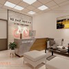 Để tăng cường nhận diện thương hiệu cho tiệm, PenViet còn tư vấn cho chủ đầu tư setup vách logo bằng PVC vân đá, hậu gỗ MDF lõi xanh chống ẩm làm nổi bật tên cửa hàng bằng Alu chân sáng. Điều này mang tới sự thu hút cho khu vực quầy thu ngân.