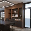 Tại phía đối diện kiến trúc sư cũng sử dụng vách ốp Background bằng gỗ MDF cốt xanh cùng với bảng trắng ở chính giữa nhằm phục vụ nhu cầu sử dụng của chủ đầu tư.