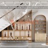 Bên phải mẫu thiết kế cửa hàng bao gồm 2 chiếc kệ đứng cao cũng bằng MDF, một kệ có cánh tủ một kệ không có. Kệ dưới gầm cầu thang khoa học tận dụng được tối đa không gian cửa hàng. Đèn led hắt đợt có nhiệm vụ chiếu ánh sáng vào trong tùng khung kệ.