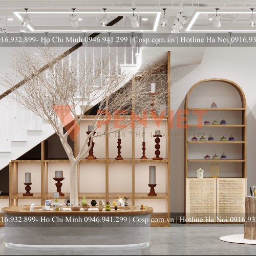 Chắc là rất ít khách hàng kinh doanh nến tìm kiếm một đơn vị để thiết kế và thi công nội thất đúng không quý vị. Nhưng bạn thử xem xem, cửa hàng này được Penviet thiết kế có nét liền, sự duyên dáng được bộc lộ trên từng nội thất. Nhưng đừng lo nếu quý khách tìm đến Cosp.com.vn để thiết kế shop khác, tại đây chúng tôi có rất nhiều dự án độc lạ, quý vị có thể tham khảo:
