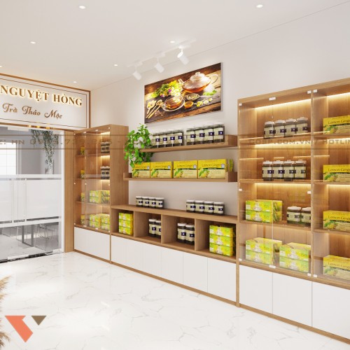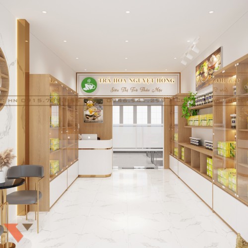 Trong bối cảnh xu hướng sống xanh và chăm sóc sức khỏe ngày càng được ưa chuộng, các cửa hàng trà thảo mộc đang dần trở thành điểm đến quen thuộc của người tiêu dùng. Trong số đó, cửa hàng Trà hoa Nguyệt Hồng nổi bật bởi chất lượng sản phẩm và nhờ vào thiết kế nội thất tinh tế, hiện đại và mang đậm dấu ấn thương hiệu. Bài viết này sẽ cùng bạn khám phá chi tiết thiết kế không gian của cửa hàng qua các khu vực chức năng chính và cách bài trí nội thất do PenViet triển khai.