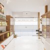 Ngay từ cái nhìn đầu tiên, cửa hàng tạo thiện cảm với không gian chủ đạo được phối màu trắng, nâu gỗ tạo nên sự sang trọng nhưng không phô trương. Sàn lát gạch vân đá trắng bóng giúp không gian thêm phần rộng rãi, sạch sẽ và cao cấp. Tường ốp đá vân mây cùng những đường chỉ vàng ánh kim tăng điểm nhấn thẩm mỹ nhưng vẫn giữ được nét nhẹ nhàng.