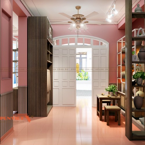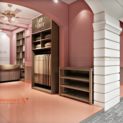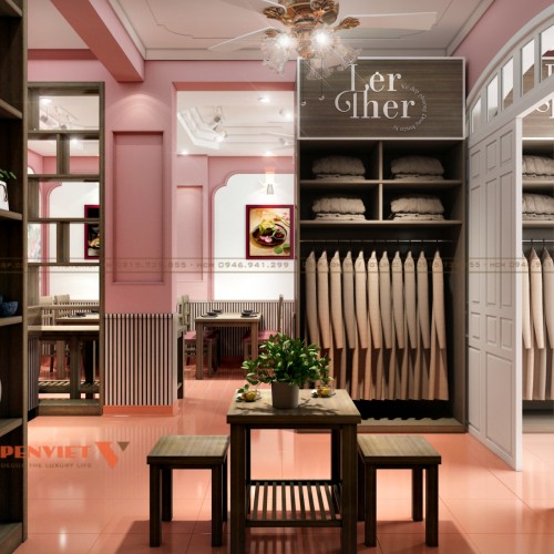 Thiết kế nội thất store Ngọc Đài mang chút tối giản nhưng đậm nét cá tính riêng thu hút khách hàng. Với gam màu hồng cánh sen điểm nhấn trên nền màu trắng tạo nên dấu ấn riêng cho thương hiệu. Cùng PenViet tìm hiểu kỹ hơn về phương án thiết kế cửa hàng kết hợp quán ăn từ thiện dưới đây.