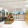 Giá kệ trái cây chính giữa khu vực quầy hàng