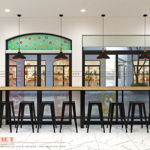Dãy ghế ngồi phục vụ khách hàng giống như quầy bar thu nhỏ