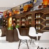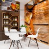 Để hoàn thiện thêm không gian nội thất shop mật ong, chúng tôi đã bố trí thêm một bộ bàn ghế dùng để tiếp khách ở bên trong và một vách ngăn khung sắt phủ tranh bạt Hiflex
