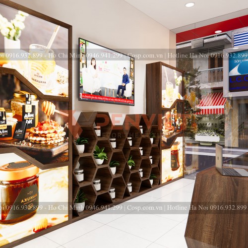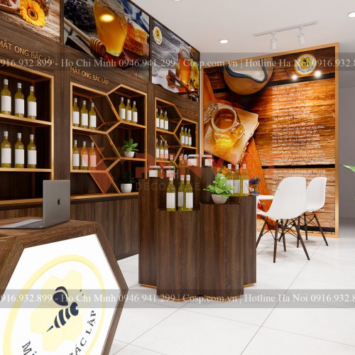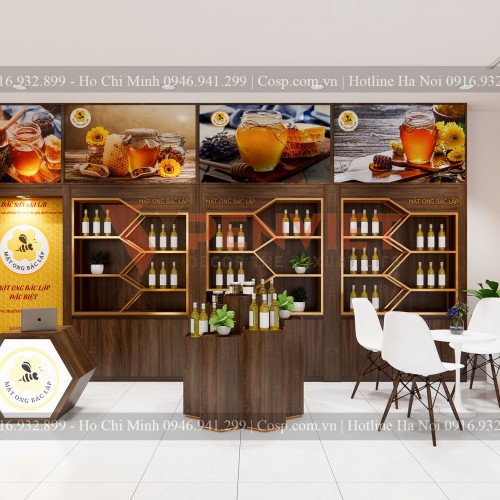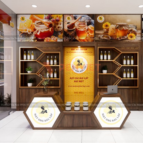 Thiết kế quầy kệ cho cửa hàng mật ong Bác Lập