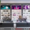 Hai bên tường được thiết kế hệ tủ gỗ MDF cao cấp chống cong vênh mối mọt, đảm bảo độ bền cao kết hợp với mặt kính cường lực trong để có thể phô bày và tôn lên vẻ đẹp của sản phẩm. Với nền trắng và viền đen, hệ tủ tạo nên phong cách chung của shop đó là sang trọng và hiện đại. Với thiết kế các hệ tủ Module được thiết kế âm tường là lựa chọn hoàn hảo cho diện tích của shop. Không chỉ tối đa hóa diện tích mà cửa hàng giữ được sự thông thoáng nhất định