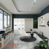 Phòng này được ngăn nhẹ bằng kính, không làm mất sự liên kết không gian nhưng vẫn đủ riêng tư. Bên trong có sofa, bàn trà và kệ trưng bày nhỏ, phù hợp cho việc trò chuyện giữa nhân viên và khách hàng về các dịch vụ như spa thú cưng hay chăm sóc định kỳ.