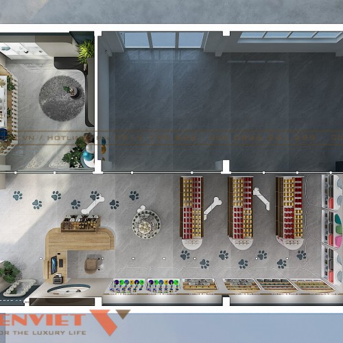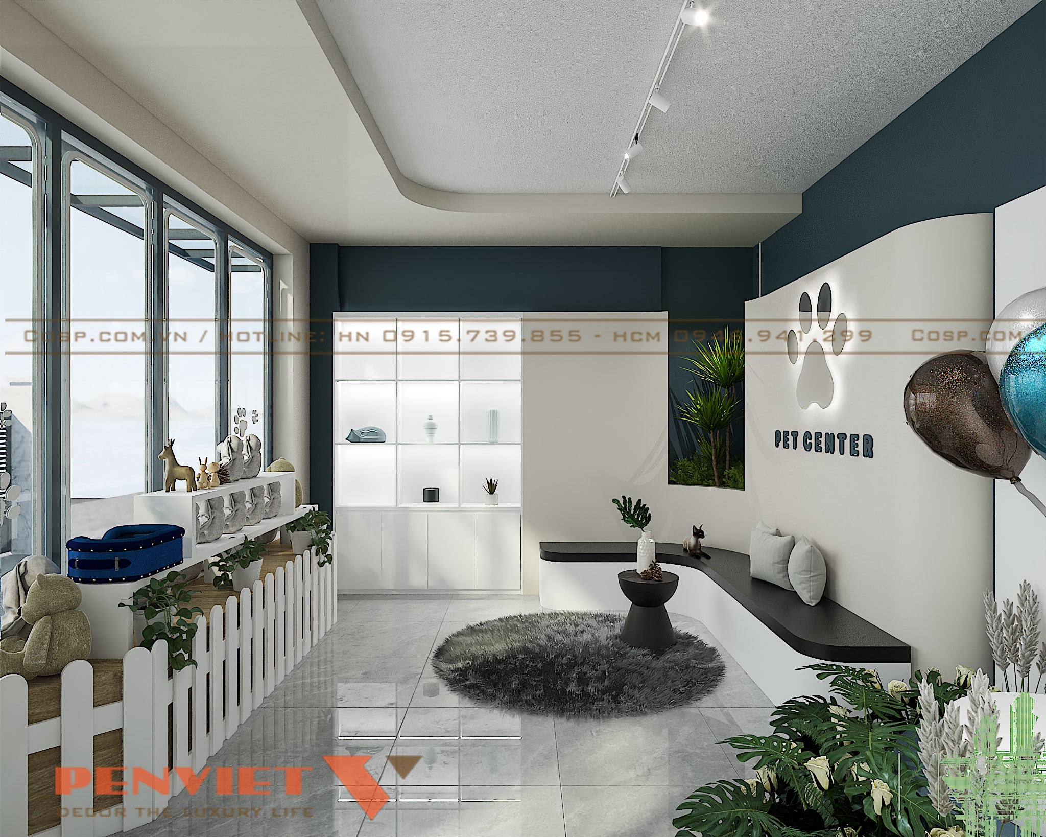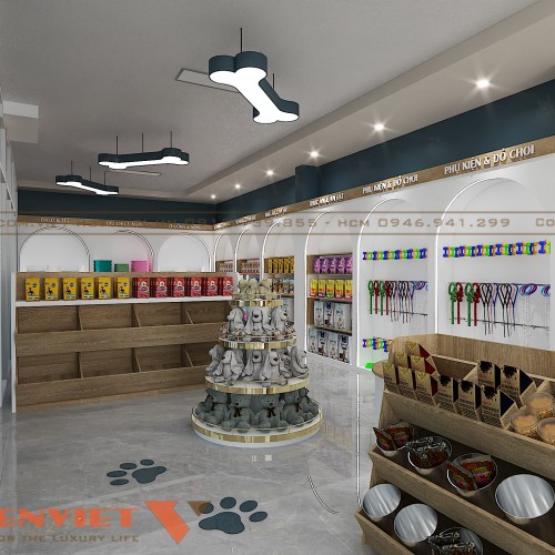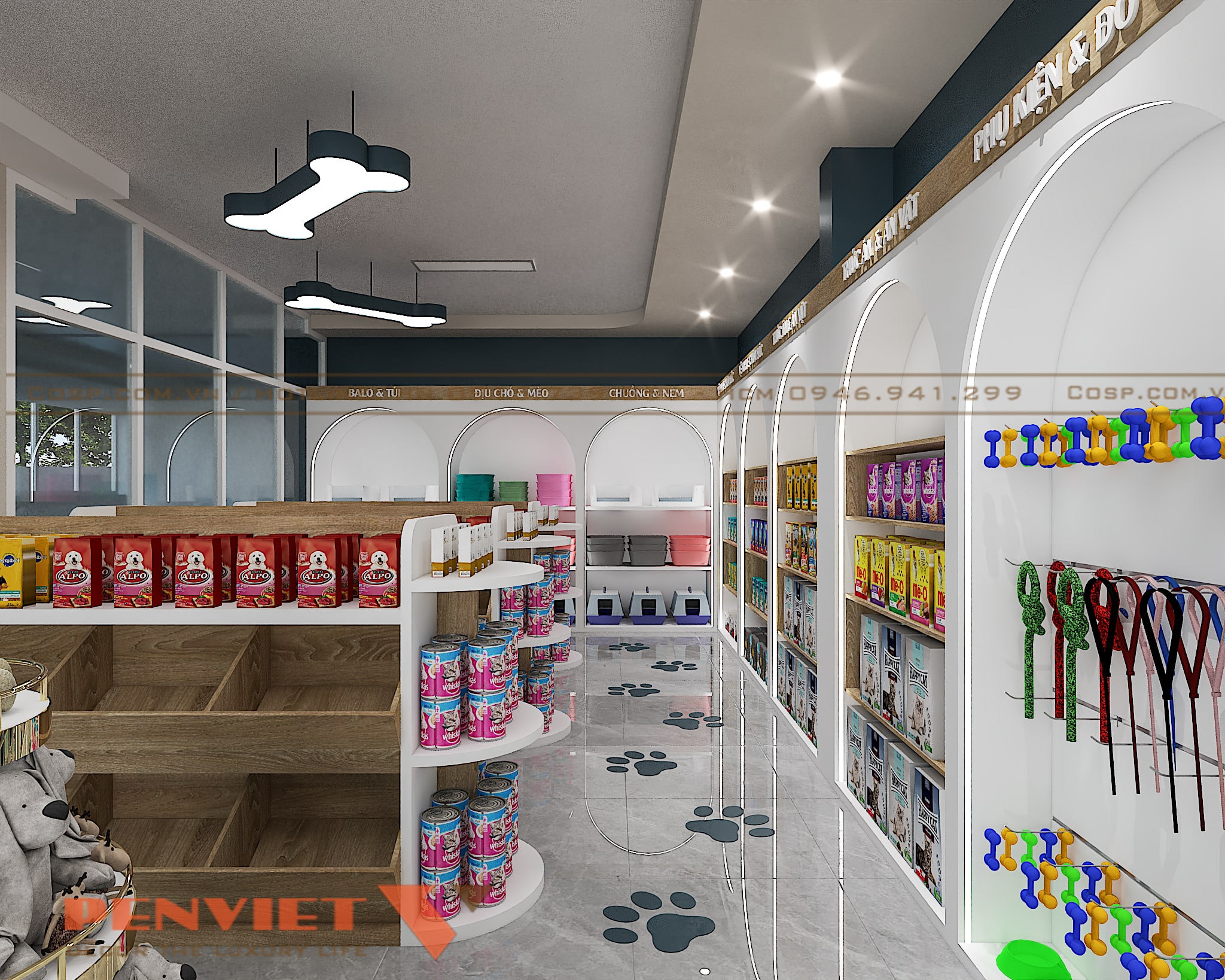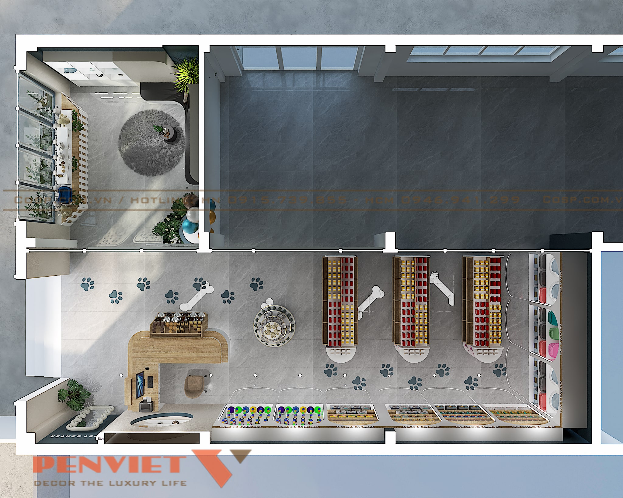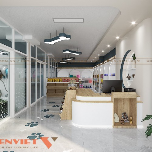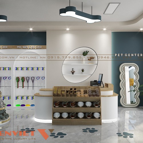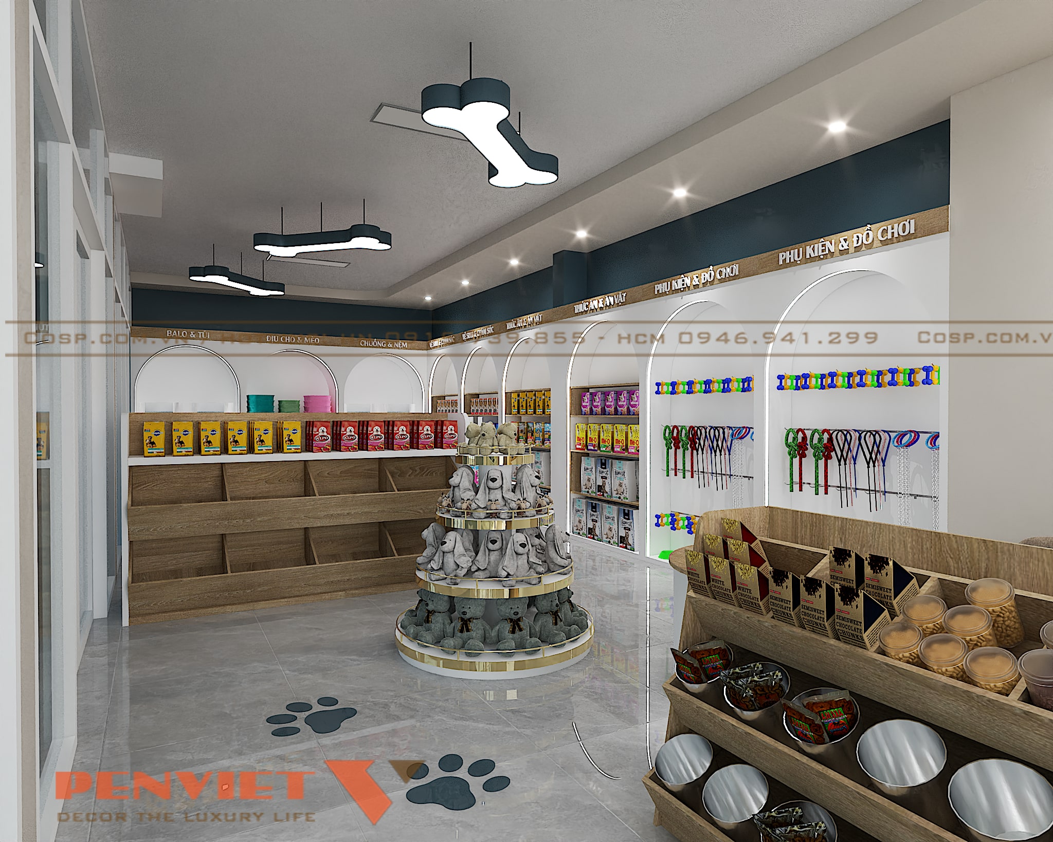 Thiết kế shop Pet Center tập trung vào việc tổ chức không gian hiệu quả, khoa học và gần gũi. Mỗi chi tiết từ bảng hiệu, mặt bằng đến cách sắp xếp kệ trưng bày đều thể hiện tư duy thiết kế lấy trải nghiệm khách hàng làm trọng tâm. Nếu bạn muốn tìm hiểu ý tưởng thiết kế nội thất, hãy liên hệ PenViet để được hỗ trợ.