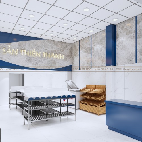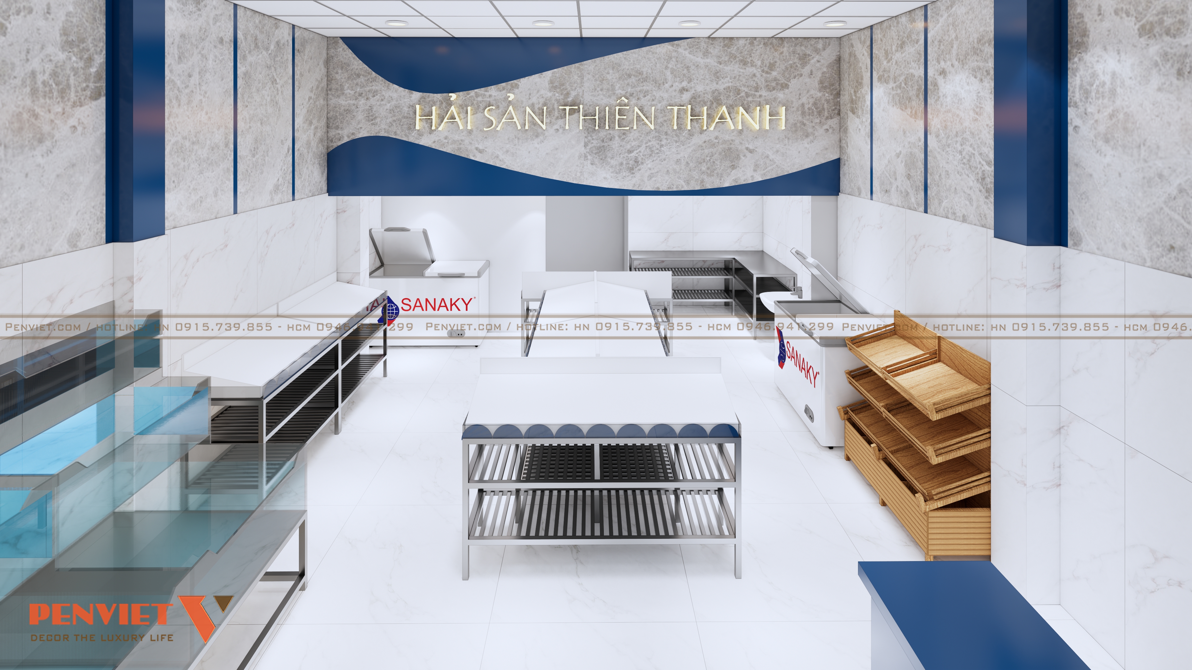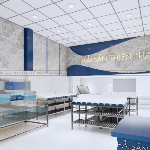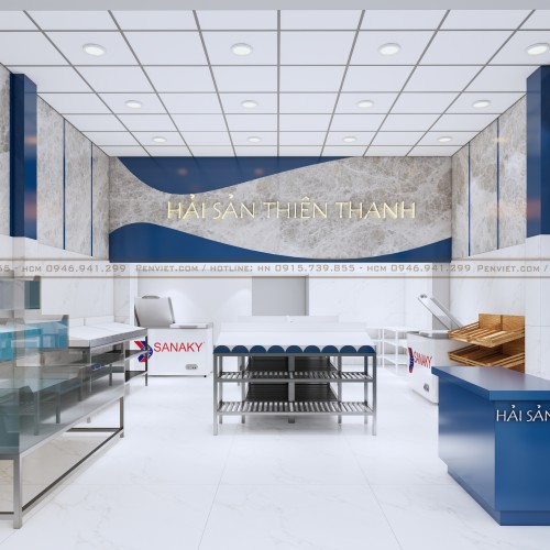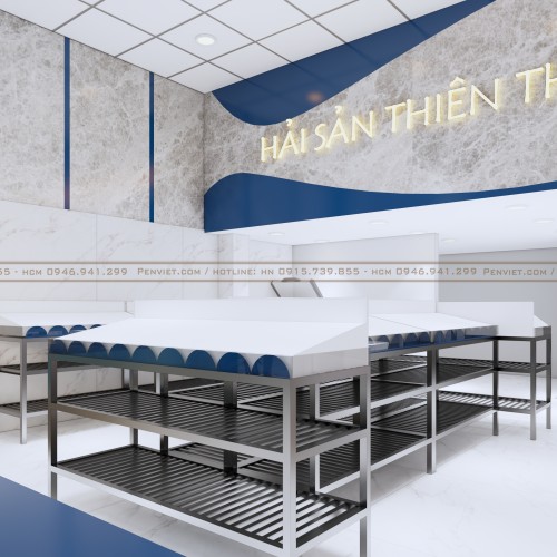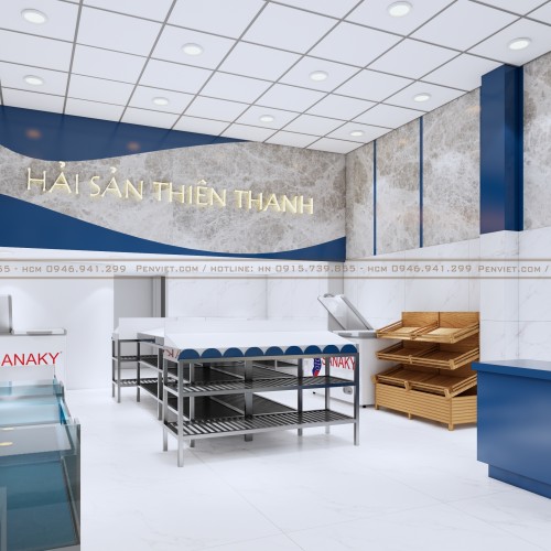 Thiết kế nội thất cửa hàng Hải sản Thiên Thanh có cách bố trí hợp lý và vật liệu bền bỉ đáp ứng yêu cầu về mặt thẩm mỹ. Nếu bạn mong muốn sở hữu cửa hàng kinh doanh như vậy, hãy liên hệ PenViet ngay hôm nay.