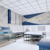 Trần nhà được thiết kế đơn giản với các tấm trần vuông đều, kết hợp với hệ thống đèn LED âm trần ánh sáng trắng, mang lại sự đồng đều và tạo cảm giác không gian rộng rãi, thoáng đãng.