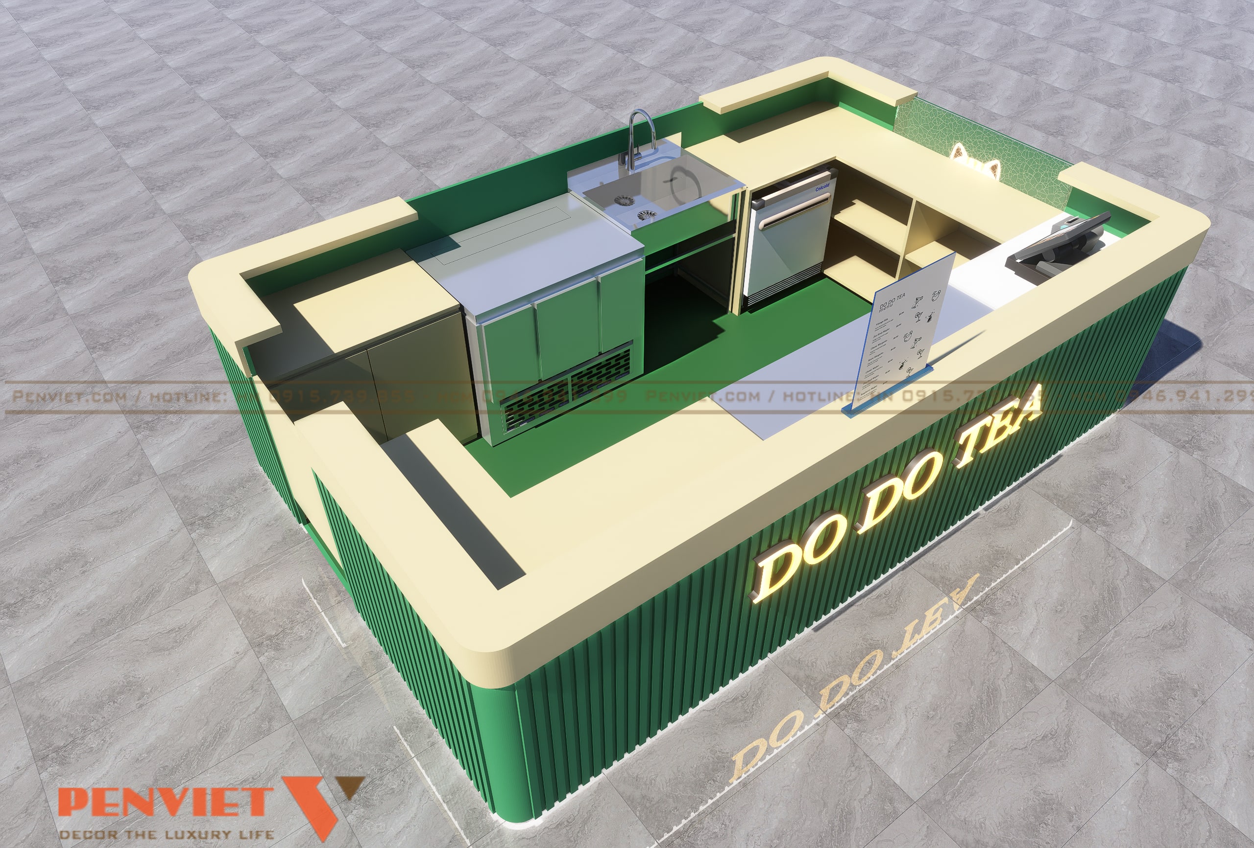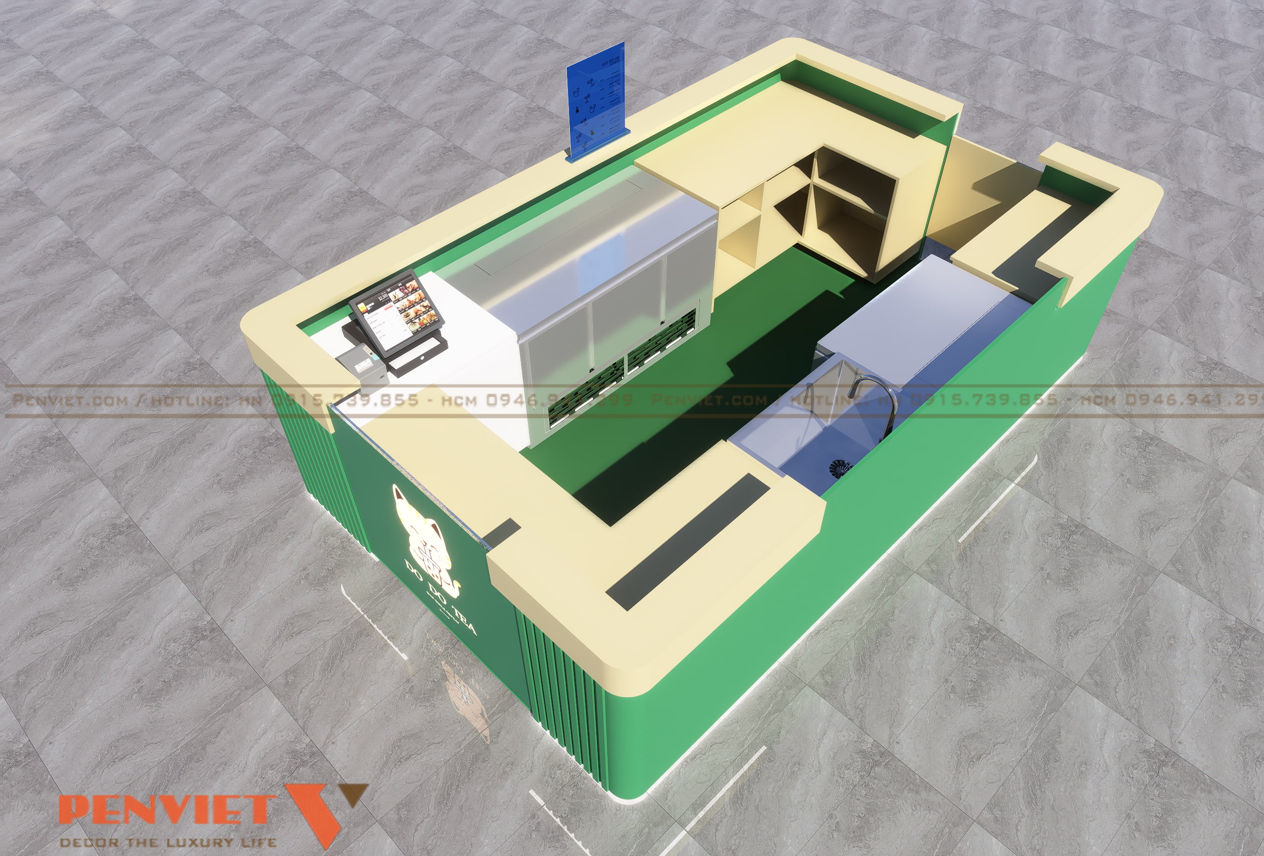 Ngày nay, các thương hiệu đồ uống như trà sữa, cà phê take away phát triển mạnh, kéo theo nhu cầu mở rộng các mô hình kiosk, quầy nhỏ gọn tại trung tâm thương mại, siêu thị, hay các tuyến phố sầm uất. Với ưu điểm diện tích vừa phải, chi phí đầu tư hợp lý, nhưng vẫn đảm bảo tính thẩm mỹ và sự tiện nghi, mô hình này được nhiều nhà đầu tư trẻ lựa chọn.