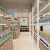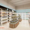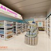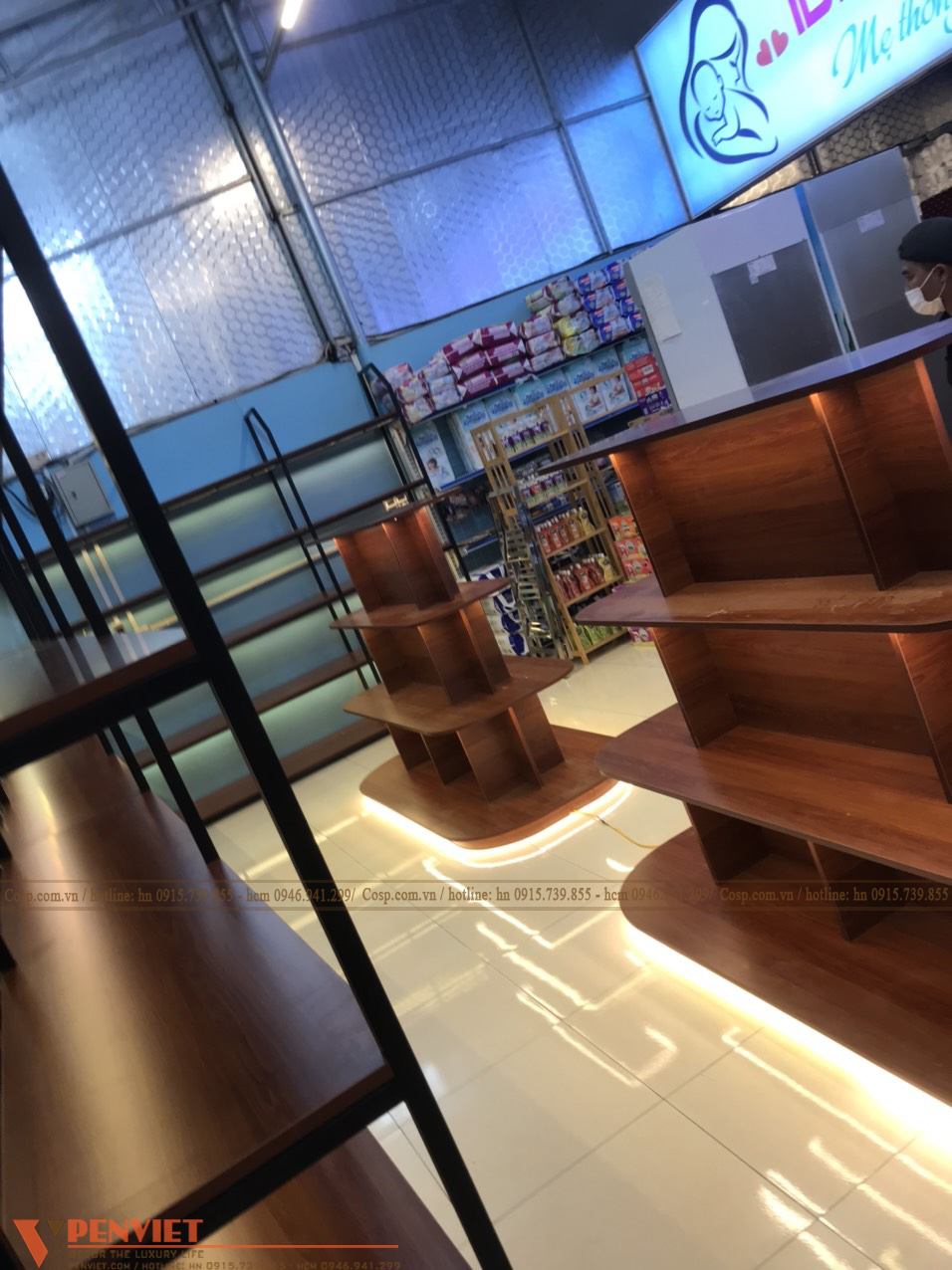 Kệ trưng bày sữa hộp: Gỗ MDF phủ melamin, kết hợp đèn led hắt sáng