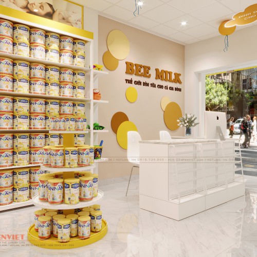 Thiết kế shop mẹ và bé ấn tượng luôn là một điểm thu hút khách. Cùng xem những gợi ý đến từ PenViet đã giúp chủ đầu tư tạo dựng được lợi thế cạnh tranh như thế nào thông qua cửa hàng Bee Milk nhé!