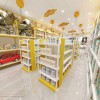 Các kệ đồ chơi khung sắt sơn tĩnh điện đỡ tủ, đợt kệ đỡ đồ gỗ MDF chống ẩm thái lan hoàn thiện melamine, thanh chắn sắt sơn tĩnh điện đỡ đồ và bục tròn bằng gỗ MDF chống ẩm thái lan hoàn thiện melamine, thanh chắn sắt sơn tĩnh điện đỡ đồ với kiểu dáng phân tầng được đặt ở vị trí trung tâm, thích hợp để trưng bày những sản phẩm chủ lực là ý đồ của các kiến trúc sư PenViet nhằm giúp khách hàng dễ dàng tìm thấy mặt hàng mà mình mong muốn cũng như khéo léo đẩy mạnh doanh số cho cửa tiệm.