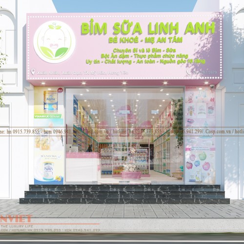 Thiết kế mặt tiền cửa hàng bỉm sữa Linh Anh