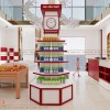 Tại tầng 1 của cửa hàng được setup làm siêu thị mini với đầy đủ sản phẩm phục vụ mẹ và bé. Ngay cửa ra vào, bạn sẽ nhìn thấy quầy lễ tân với vách logo màu đỏ thu hút và ấn tượng.