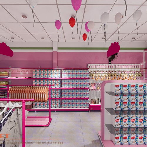 Tổng thể bố trí nội thất cửa hàng mẹ và bé khoa học, đẹp mắt