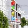 Hãy thể hiện phong cách đáng yêu, sự gần gũi với trẻ nhỏ ngay từ khu vực mặt tiền siêu thị. Thiết kế mặt tiền được thể hiện qua màu sắc và cách thiết kế biển hiệu. Trên biển hiệu sẽ là tên siêu thị được thiết kế xinh xắn.