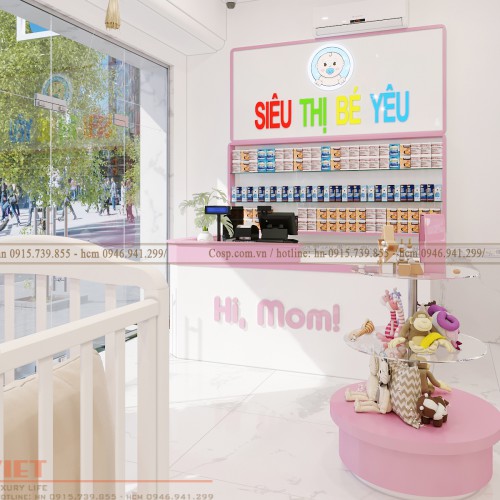 Bạn muốn thiết kế siêu thị bé yêu chuyên nghiệp, đẹp mắt để tạo ấn tượng tốt cho khách? Bạn muốn thiết kế nội thất siêu thị bé yêu theo phong cách hiện đại, cao cấp? Dưới đây là một số gợi ý thiết kế siêu thị bé yêu của Nội Thất Cosp mời bạn đọc tham khảo.