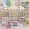 Sau bàn lễ tân hãy đặt kệ sát tường để trưng bày một số sản phẩm dành cho trẻ nhỏ thiết yếu. Việc này sẽ kích thích khách hàng mua thêm.